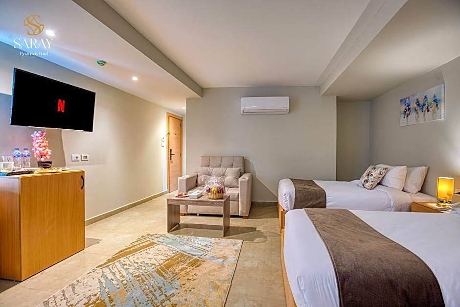 +1 (888) 385-8465Benvenuto a Saray Pyramids & Museum View Hotel, dove la tua avventura egiziana inizia all'incantevole incrocio tra comfort e cultura! Situato a soli 4,9 mi dal vivace centro di Giza, questo delizioso hotel 3 stelle offre un perfetto equilibrio tra ospitalità tradizionale e comfort moderni. Con tariffe a partire da un prezzo imbattibile, il viaggio per esplorare le meraviglie dell'Egitto diventa ancora più dolce quando hai un rifugio accogliente che ti aspetta dopo una giornata a esplorare le maestose piramidi!